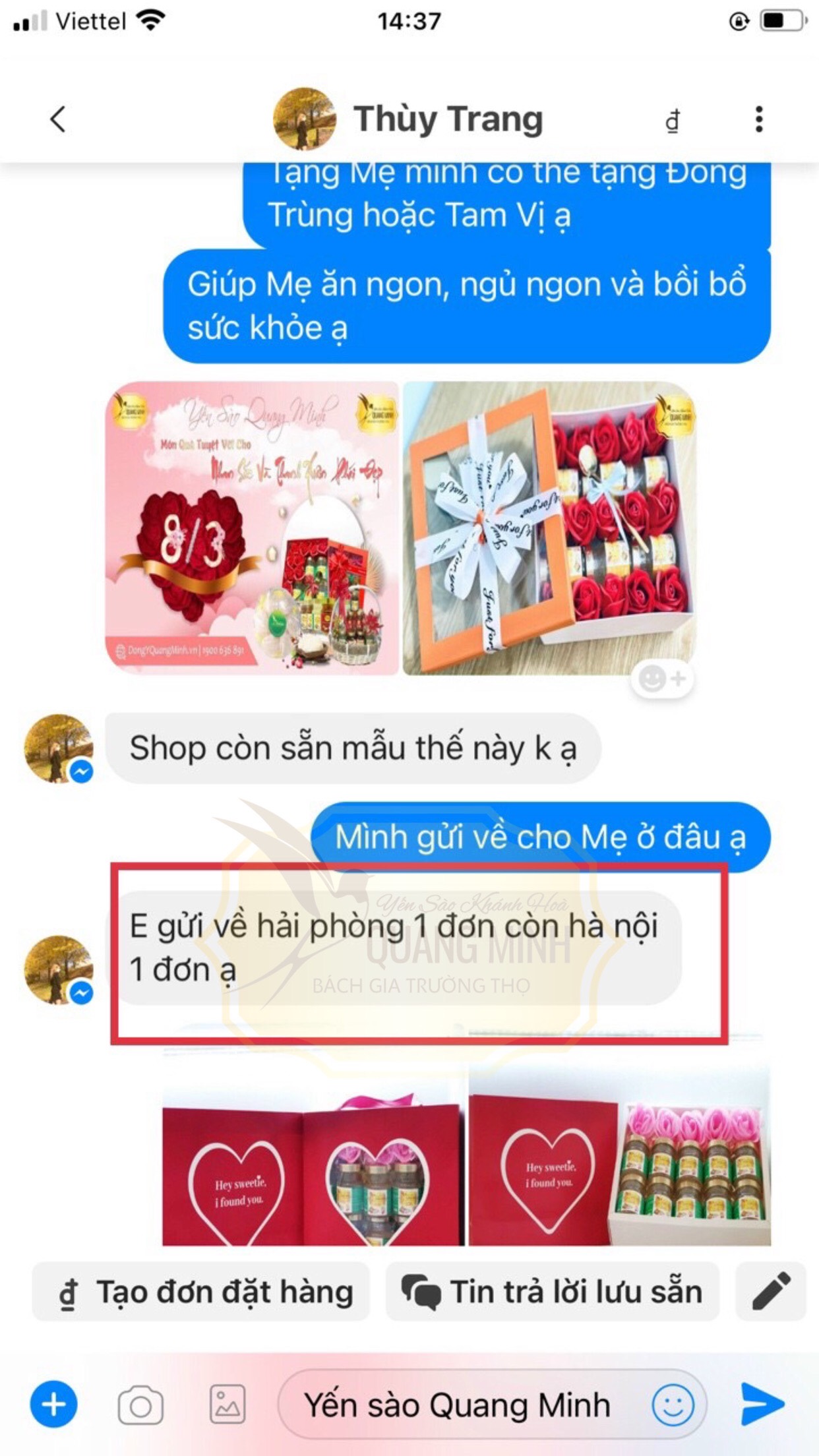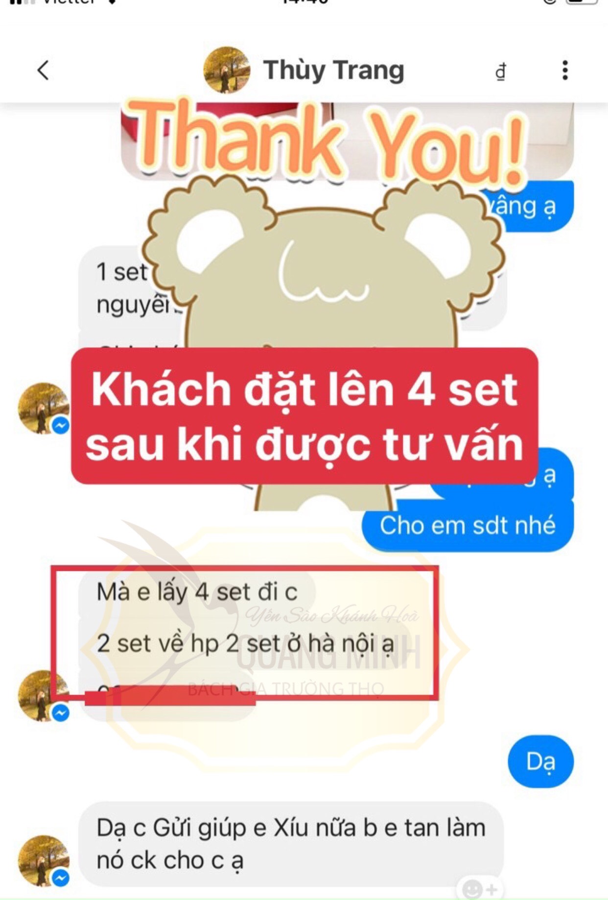 Yến Sào Quang Minh là địa chỉ cung cấp yến sào chưng sẵn chất lượng và giá cả hợp lý, với phương châm sức khỏe khách hàng là sức khỏe của chính mình và người thân. Nếu có bất kỳ thắc mắc gì về các sản phẩm yến sào bạn có thể liên hệ với chúng tôi để được tư vấn kỹ hơn nhé!