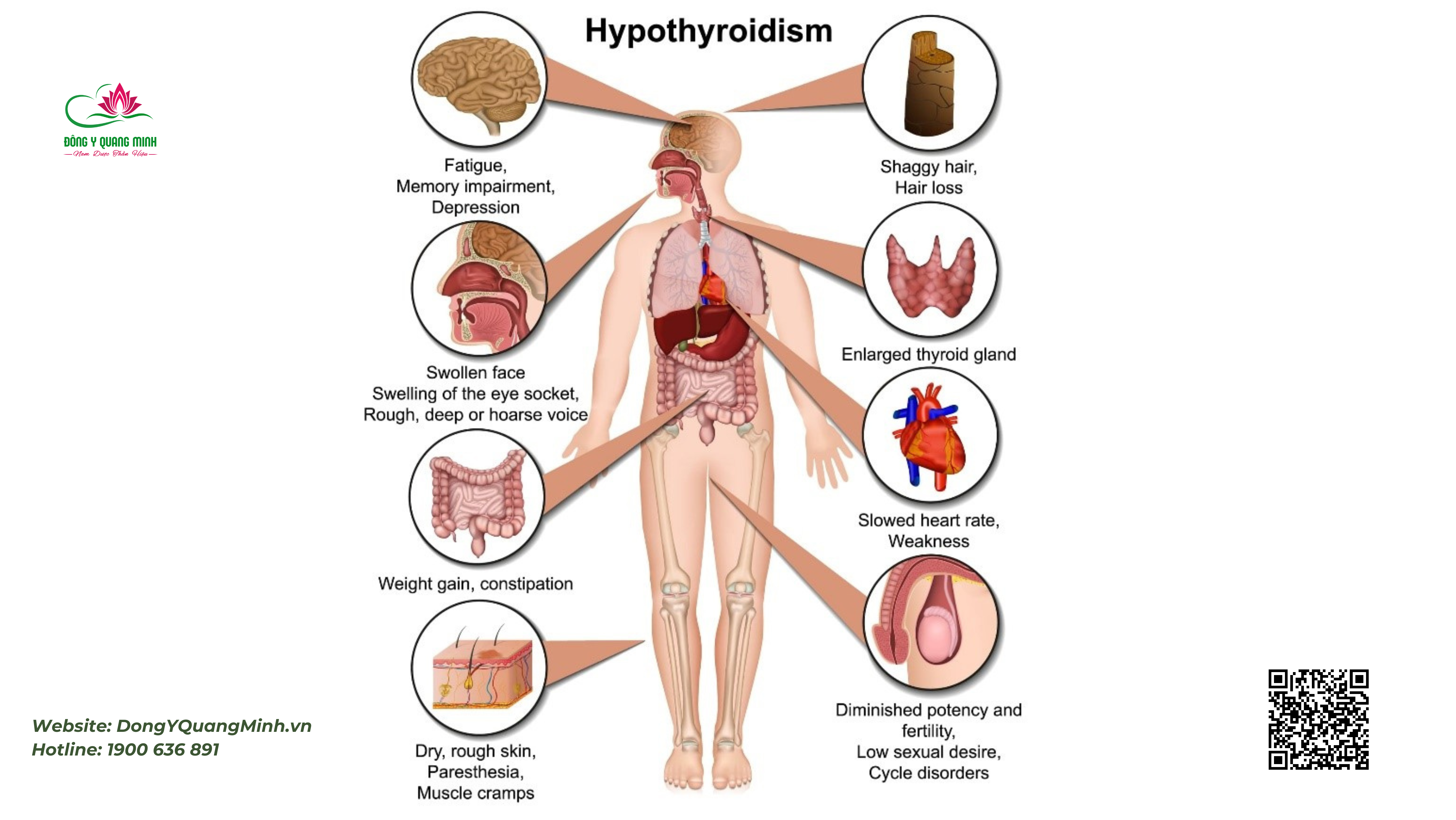 Khi nồng độ hormone tuyến giáp quá thấp, các tế bào của cơ thể không thể nhận đủ hormone tuyến giáp và các quá trình chuyển hóa của cơ thể trở nên chậm lại. Khi cơ thể hoạt động chậm, bạn có thể nhận thấy mình lạnh hơn, dễ mệt mỏi hơn, da khô hơn, giảm trí nhớ, trầm cảm và bắt đầu bị táo bón. Bởi các triệu chứng thường thay đổi và không đặc hiệu, cách duy nhất để biết chắc chắn liệu bạn có bị suy giáp hay không là xét nghiệm máu định lượng TSH.