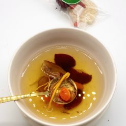 Tổ yến 18%, đông trùng hạ thảo, đường phèn, nước, canxi lactate (E327), sodium alginate (E401).