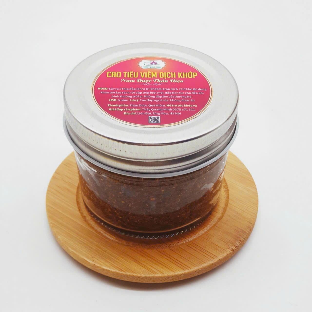 Hiện tại, Đông Y Quang Minh đã cho ra mắt sản phẩm Cao tiêu viêm khớp gối – Nam Dược Thần Hiệu giá chỉ 250.000 đồng/ lọ/ 100g. Thành phần gồm có các thảo dược quý hiếm. Cách dùng: lấy ra 2 thìa cao đắp lên vị trí khớp gối bị tràn dịch. Chờ khô thì dùng khăn ướt lau sạch rồi đắp tiếp lượt mới. Không đắp lên vết thương hở.