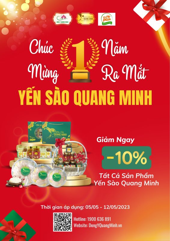 Ngoài ra, trong thời gian từ ngày 05/05/2023 đến hết ngày 12/05/2023, Yến Sào Quang Minh cũng giảm giá 10% cho tất cả các sản phẩm Yến Sào Quang Minh.